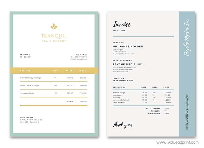 บิล หรือ เอกสารทางบัญชี ประเภทต่างๆ ได้แก่ ใบเสร็จรับเงิน ใบกำกับภาษี ใบแจ้งหนี้ เป็นต้น เป็นแบบฟอร์มเดียวๆ หรือเป็นแบบฟอร์มชนิดเข้าเล่มก็ได้ มีวัตถุประสงค์การจัดทำเอกสารทางบัญชี ขึ้นอยู่กับความต้องการขององค์กรนั้นๆ ก่อนการจัดทำอาจจำเป็นต้องศึกษาระบบ ภาพรวม ผังการกรอกเอกสาร การไหลของข้อมูลภายในองค์กร การจัดทำเอกสารทางบัญชี บิล หรือแบบฟอร์มต่างๆ นอกจากจะช่วยส่งเสริมภาพลักษณ์ขององค์กร ยังช่วยสร้างความน่าเชื่อถือ และลดการสูญเสียต่างๆได้ สามารถบรรจุข้อความหรือภาพโฆษณา ชื่อ สถานที่ติดต่อ ที่อยู่ เบอร์โทรศัพท์ ลงในฟอร์มได้ สามารถเป็นได้ตั้งแต่ 1 ถึง 4 สี เข้าเล่มเป็นชุดๆได้ตั้งแต่ 2 ใบขึ้นไป ลงในกระดาษธรรมดา หรือกระดาษที่มีเคมีในตัว นอกจากนี้ยังสามารถลง เล่มที่ เลขที่ แบบเรียงตัวเลขได้