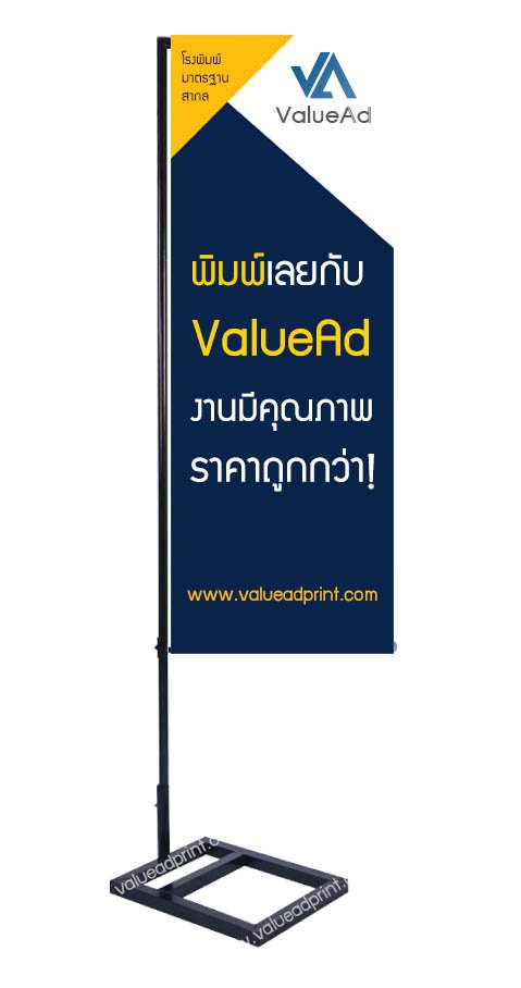 ธงญี่ปุ่น (J-Flag) เป็นอุปกรณ์สื่อโฆษณาที่นิยมมาก ราคาถูกกว่าปุกรณ์โฆษณาชนิดอื่น ทำง่าย ใช้พื้นที่จัดวางน้อย มีความโดดเด่นสวยงาม เคลื่อนย้ายสะดวก แข็งแรง ทนทาน ใช้งานได้ทั้งภายในอาคาร และภายนอกอาตาร โครงเป็นเหล็กทำสี มีแขนด้านบนและด้านล่าง แขนด้านล่างสามารถปรับระดับความสูงต่ำได้ ชิ้นงานพิมพ์อิงค์เจ็ท หมึกประเภทเอ้าท์ดอร์ (Outdoor Inkjet) ลงไวนิลทึบแสง พิมพ์เป็นผืนยาวแล้วประกบกัน 2 ด้าน พิมพ์ 4 สี สีสันสด สวยงาม และมีการเย็บขอบ ร้อยท่อ สำหรับสวมลงโครงเหล็ก